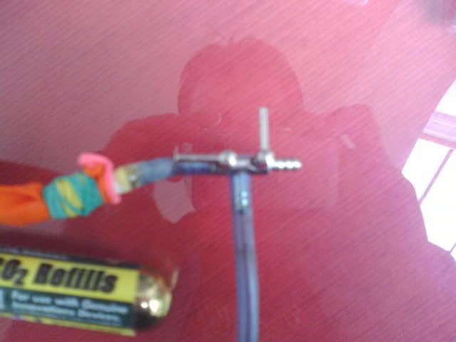 6.- La conecto al tubo aireador que me trae el CO2 y sello bien la unión con pegamento.