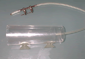 Nos vamos a centrar en la construcción de la campana, para ello lo primero que vamos a hacer es un pequeño orificio en la base del vaso de tubo, lo suficientemente grande para que podamos introducir por él el tubo de aire, debe quedar lo más ajustado posible para evitar pérdidas, sellamos de todos modos con pegamento.